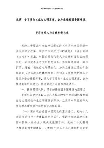【七哥公文】2025年:【七哥公文】党课:学习贯彻A生态文明思想,奋力推进美丽中国建设,努力实现人与自然和谐共生+更多免费公文+VX:QiGeGongWen2024+更多免费公文+VX:QiGeGongWen2024