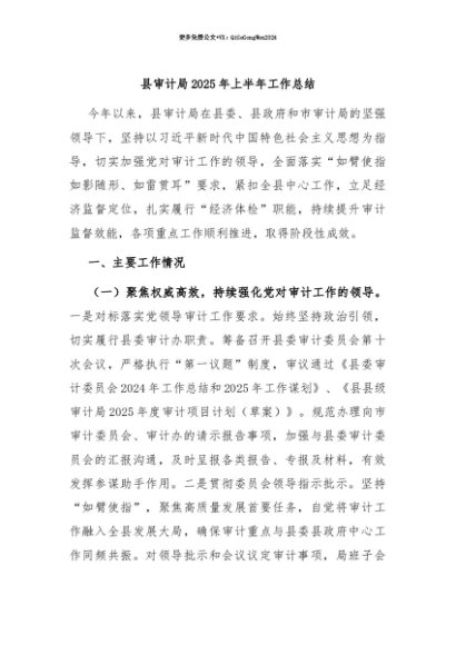 【七哥公文】2025年:【七哥公文】县审计局2025年上半年工作总结+更多免费公文+VX:QiGeGongWen2024+更多免费公文+VX:QiGeGongWen2024