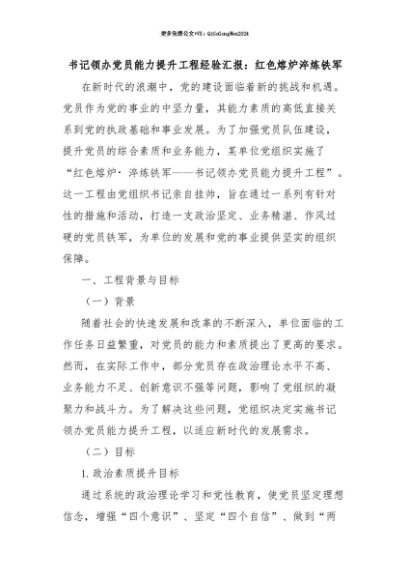 【七哥公文】2025年:【七哥公文】书记领办党员能力提升工程经验汇报:红色熔炉淬炼铁军+更多免费公文+VX:QiGeGongWen2024+更多免费公文+VX:QiGeGongWen2024