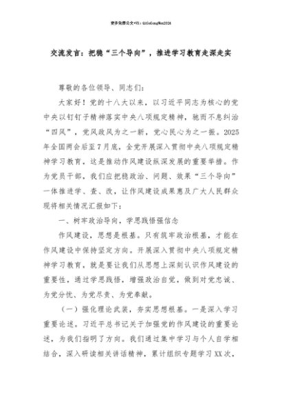 【七哥公文】2025年:【七哥公文】交流发言:把稳“三个导向”,推进学习教育走深走实+更多免费公文+VX:QiGeGongWen2024+更多免费公文+VX:QiGeGongWen2024