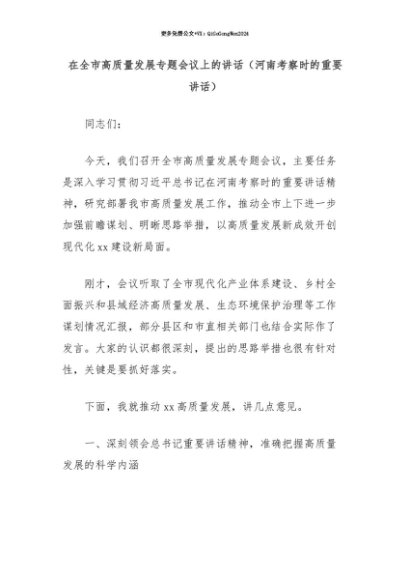 【七哥公文】2025年:【七哥公文】在全市高质量发展专题会议上的讲话(河南考察时的重要讲话)+更多免费公文+VX:QiGeGongWen2024+更多免费公文+VX:QiGeGongWen2024