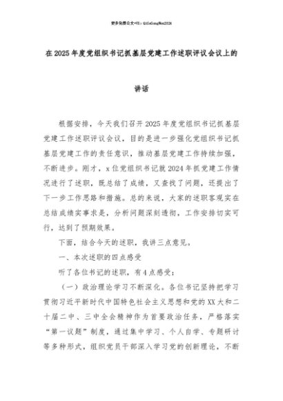 【七哥公文】2025年:【七哥公文】在2025年度党组织书记抓基层党建工作述职评议会议上的讲话+更多免费公文+VX:QiGeGongWen2024+更多免费公文+VX:QiGeGongWen2024