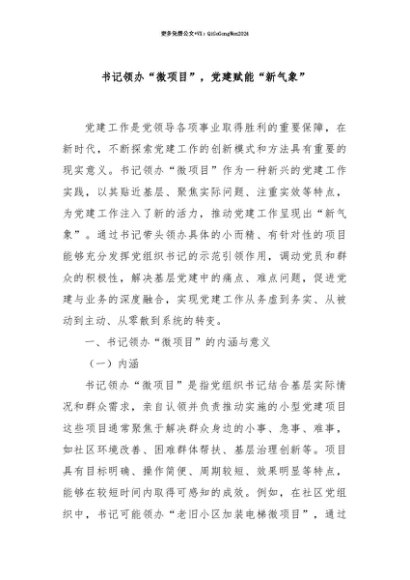 【七哥公文】2025年:【七哥公文】书记领办“微项目”,党建赋能“新气象”+更多免费公文+VX:QiGeGongWen2024+更多免费公文+VX:QiGeGongWen2024