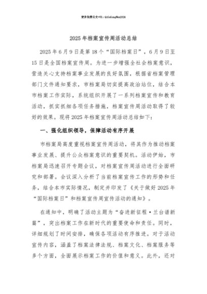 【七哥公文】2025年:【七哥公文】2025年档案宣传周活动总结+更多免费公文+VX:QiGeGongWen2024+更多免费公文+VX:QiGeGongWen2024