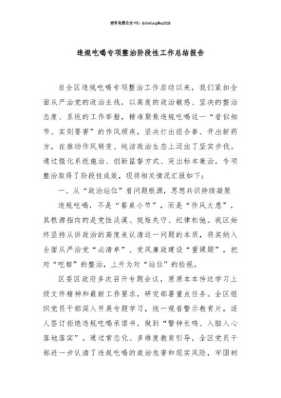 【七哥公文】2025年:【七哥公文】违规吃喝专项整治阶段性工作总结报告+更多免费公文+VX:QiGeGongWen2024+更多免费公文+VX:QiGeGongWen2024