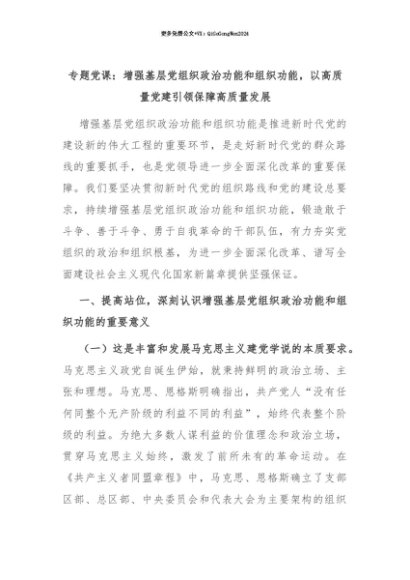 【七哥公文】2025年:【七哥公文】专题党课:增强基层党组织政治功能和组织功能,以高质量党建引领保障高质量发展+更多免费公文+VX:QiGeGongWen2024+更多免费公文+VX:QiGeGongWen2024