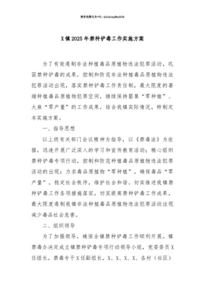 【七哥公文】2025年:【七哥公文】X镇2025年禁种铲毒工作实施方案+更多免费公文+VX:QiGeGongWen2024+更多免费公文+VX:QiGeGongWen2024