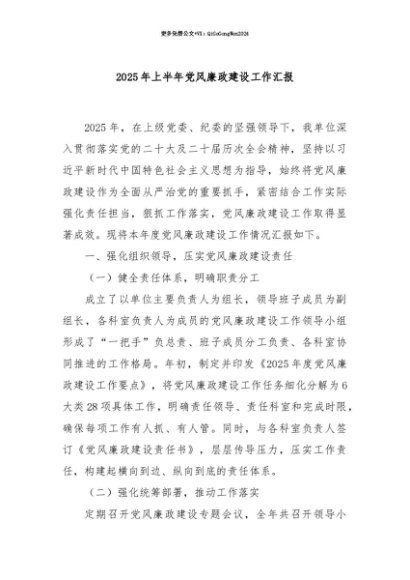 【七哥公文】2025年:【七哥公文】2025年上半年党风廉政建设工作汇报+更多免费公文+VX:QiGeGongWen2024+更多免费公文+VX:QiGeGongWen2024