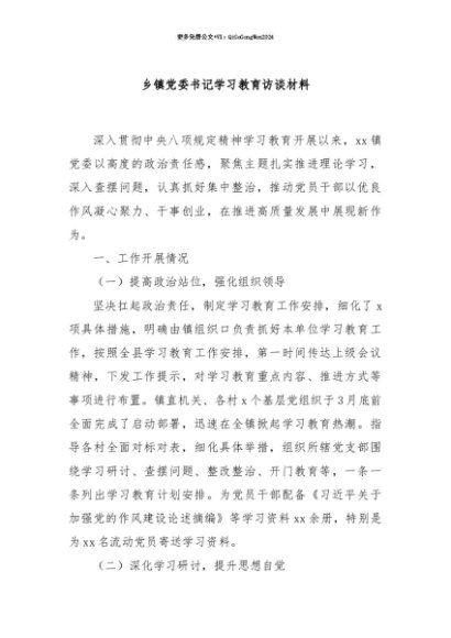 【七哥公文】2025年:【七哥公文】乡镇党委书记学习教育访谈材料+更多免费公文+VX:QiGeGongWen2024+更多免费公文+VX:QiGeGongWen2024