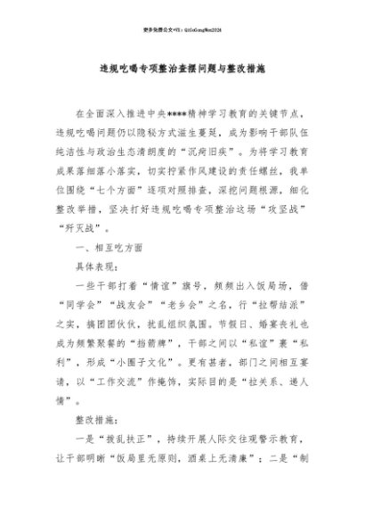 【七哥公文】2025年:【七哥公文】违规吃喝专项整治查摆问题与整改措施+更多免费公文+VX:QiGeGongWen2024+更多免费公文+VX:QiGeGongWen2024