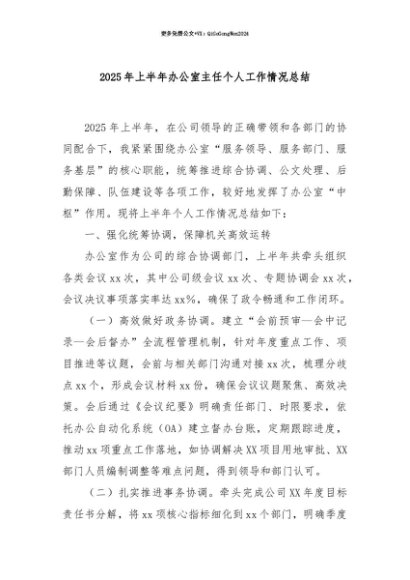 【七哥公文】2025年:【七哥公文】2025年上半年办公室主任个人工作情况总结+更多免费公文+VX:QiGeGongWen2024+更多免费公文+VX:QiGeGongWen2024