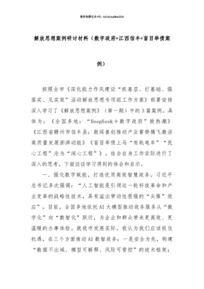【七哥公文】2025年:【七哥公文】解放思想案例研讨材料(数字政府+江西信丰+盲目举债案例)+更多免费公文+VX:QiGeGongWen2024+更多免费公文+VX:QiGeGongWen2024