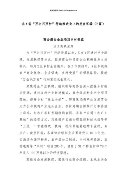 【七哥公文】2025年:【七哥公文】(7篇)在X省“万企兴万村”行动推进会上的发言汇编+更多免费公文+VX:QiGeGongWen2024+更多免费公文+VX:QiGeGongWen2024