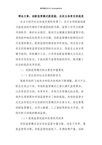 【七哥公文】2025年:【七哥公文】理论文章:创新监管模式提效能,压实主体责任促规范+更多免费公文+VX:QiGeGongWen2024+更多免费公文+VX:QiGeGongWen2024