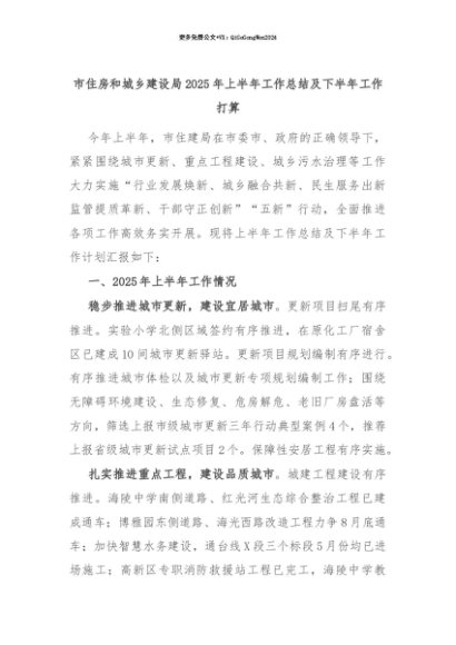 【七哥公文】2025年:【七哥公文】市住房和城乡建设局2025年上半年工作总结及下半年工作打算+更多免费公文+VX:QiGeGongWen2024+更多免费公文+VX:QiGeGongWen2024