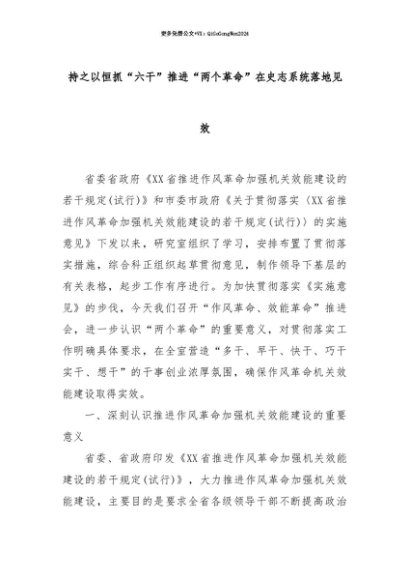 【七哥公文】2025年:【七哥公文】持之以恒抓“六干”推进“两个革命”在史志系统落地见效+更多免费公文+VX:QiGeGongWen2024+更多免费公文+VX:QiGeGongWen2024