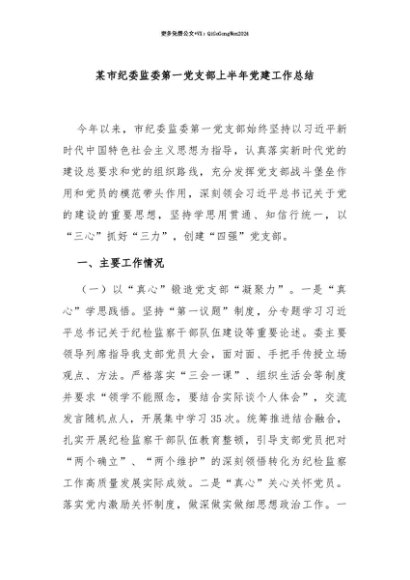 【七哥公文】2025年:【七哥公文】某市纪委监委第一党支部上半年党建工作总结+更多免费公文+VX:QiGeGongWen2024+更多免费公文+VX:QiGeGongWen2024