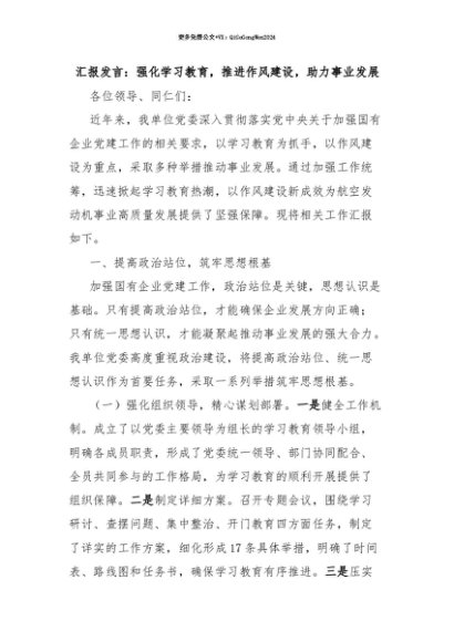 【七哥公文】2025年:【七哥公文】汇报发言:强化学习教育,推进作风建设,助力事业发展+更多免费公文+VX:QiGeGongWen2024+更多免费公文+VX:QiGeGongWen2024