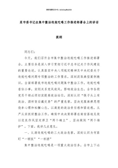 【七哥公文】2025年:【七哥公文】某市委书记在集中整治违规吃喝工作推进部署会上的讲话提纲+更多免费公文+VX:QiGeGongWen2024+更多免费公文+VX:QiGeGongWen2024
