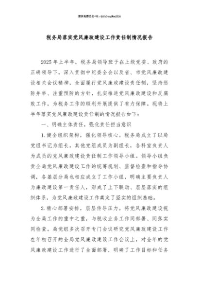 【七哥公文】2025年:【七哥公文】税务局落实党风廉政建设工作责任制情况报告+更多免费公文+VX:QiGeGongWen2024+更多免费公文+VX:QiGeGongWen2024