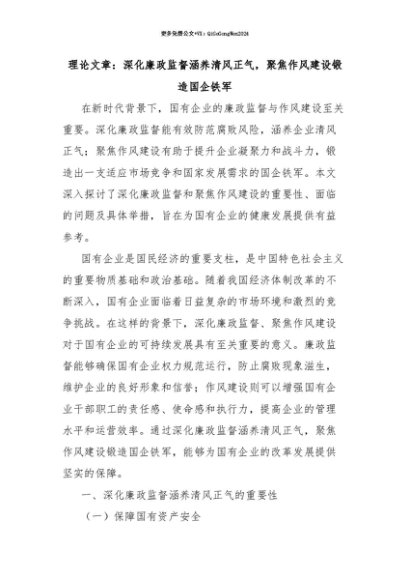 【七哥公文】2025年:【七哥公文】理论文章:深化廉政监督涵养清风正气,聚焦作风建设锻造国企铁军+更多免费公文+VX:QiGeGongWen2024+更多免费公文+VX:QiGeGongWen2024