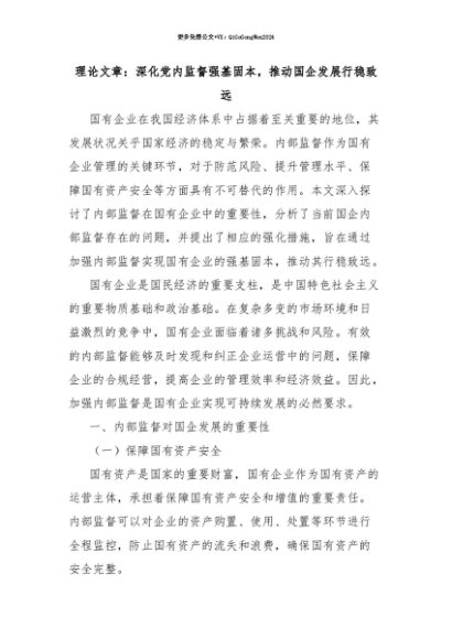 【七哥公文】2025年:【七哥公文】理论文章:深化党内监督强基固本,推动国企发展行稳致远+更多免费公文+VX:QiGeGongWen2024+更多免费公文+VX:QiGeGongWen2024