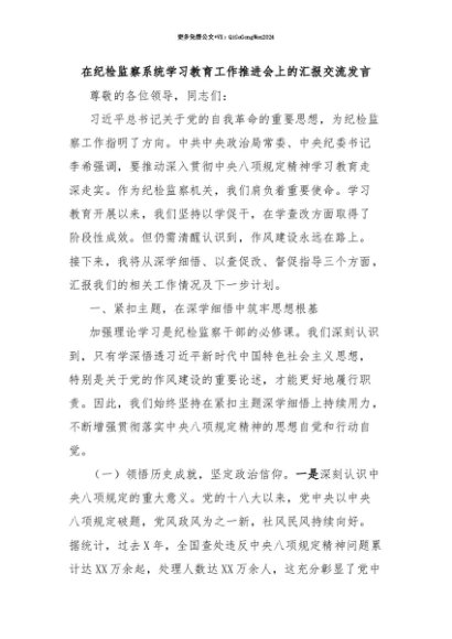 【七哥公文】2025年:【七哥公文】在纪检监察系统学习教育工作推进会上的汇报交流发言+更多免费公文+VX:QiGeGongWen2024+更多免费公文+VX:QiGeGongWen2024