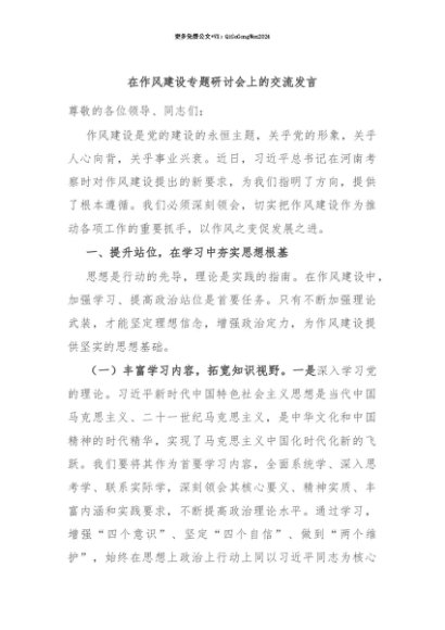 【七哥公文】2025年:【七哥公文】在作风建设专题研讨会上的交流发言+更多免费公文+VX:QiGeGongWen2024+更多免费公文+VX:QiGeGongWen2024