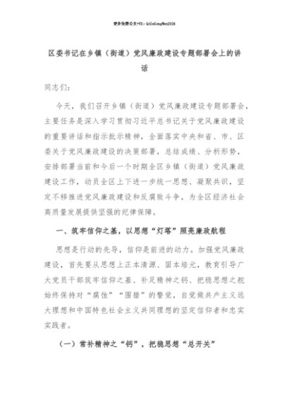 【七哥公文】2025年:【七哥公文】区委书记在乡镇(街道)党风廉政建设专题部署会上的讲话+更多免费公文+VX:QiGeGongWen2024+更多免费公文+VX:QiGeGongWen2024