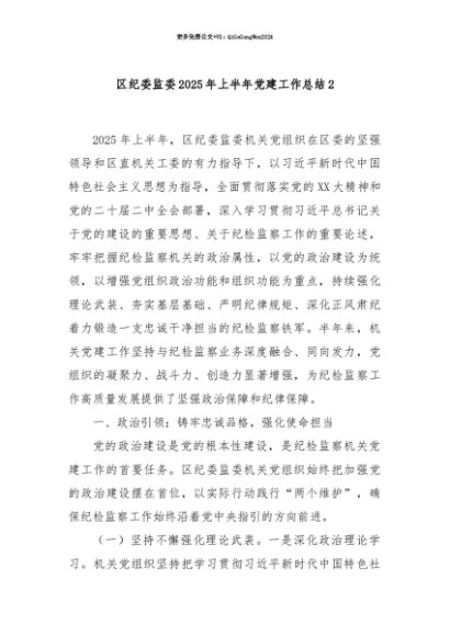 【七哥公文】2025年:【七哥公文】区纪委监委2025年上半年党建工作总结2+更多免费公文+VX:QiGeGongWen2024+更多免费公文+VX:QiGeGongWen2024