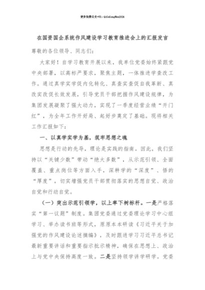 【七哥公文】2025年:【七哥公文】在国资国企系统作风建设学习教育推进会上的汇报发言+更多免费公文+VX:QiGeGongWen2024+更多免费公文+VX:QiGeGongWen2024
