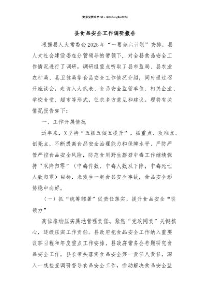 【七哥公文】2025年:【七哥公文】县食品安全工作调研报告+更多免费公文+VX:QiGeGongWen2024+更多免费公文+VX:QiGeGongWen2024