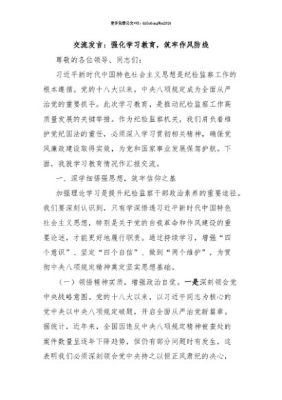 【七哥公文】2025年:【七哥公文】交流发言:强化学习教育,筑牢作风防线+更多免费公文+VX:QiGeGongWen2024+更多免费公文+VX:QiGeGongWen2024