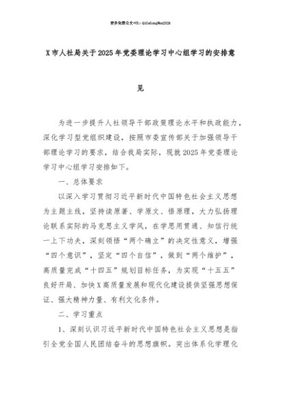 【七哥公文】2025年:【七哥公文】X市人社局关于2025年党委理论学习中心组学习的安排意见+更多免费公文+VX:QiGeGongWen2024+更多免费公文+VX:QiGeGongWen2024
