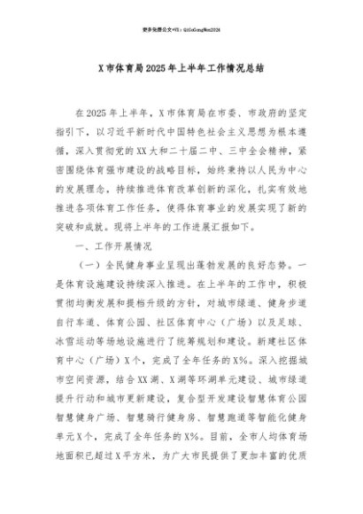 【七哥公文】2025年:【七哥公文】X市体育局2025年上半年工作情况总结+更多免费公文+VX:QiGeGongWen2024+更多免费公文+VX:QiGeGongWen2024