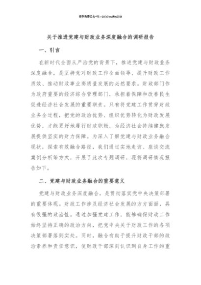 【七哥公文】2025年:【七哥公文】关于推进党建与财政业务深度融合的调研报告+更多免费公文+VX:QiGeGongWen2024+更多免费公文+VX:QiGeGongWen2024