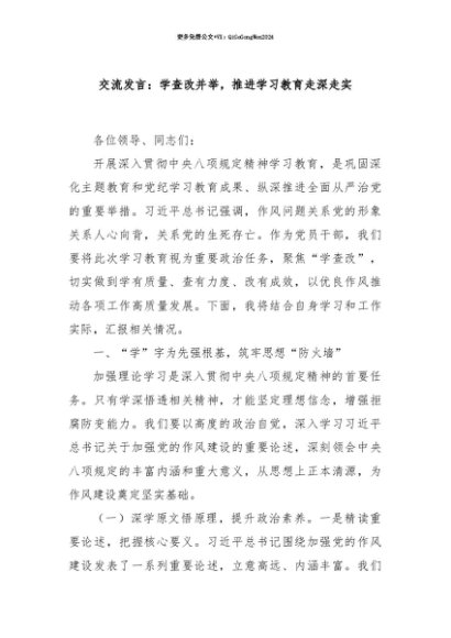 【七哥公文】2025年:【七哥公文】交流发言:学查改并举,推进学习教育走深走实+更多免费公文+VX:QiGeGongWen2024+更多免费公文+VX:QiGeGongWen2024