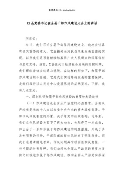 【七哥公文】2025年:【七哥公文】XX县党委书记在全县干部作风建设大会上的讲话+更多免费公文+VX:QiGeGongWen2024+更多免费公文+VX:QiGeGongWen2024