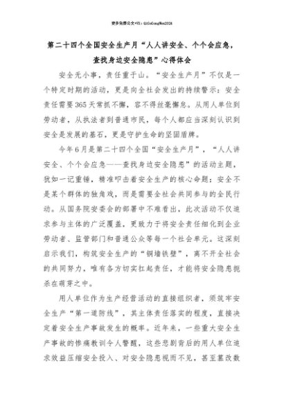 【七哥公文】2025年:【七哥公文】第二十四个全国安全生产月“人人讲安全、个个会应急,查找身边安全隐患”心得体会+更多免费公文+VX:QiGeGongWen2024+更多免费公文+VX:QiGeGongWen2024