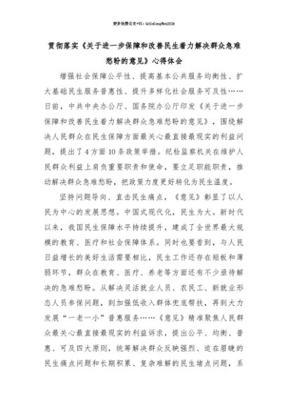 【七哥公文】2025年:【七哥公文】贯彻落实《关于进一步保障和改善民生着力解决群众急难愁盼的意见》心得体会+更多免费公文+VX:QiGeGongWen2024+更多免费公文+VX:QiGeGongWen2024