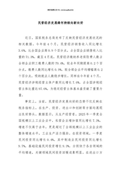 【七哥公文】2025年:【七哥公文】民营经济发展缘何持续向新向好+更多免费公文+VX:QiGeGongWen2024+更多免费公文+VX:QiGeGongWen2024