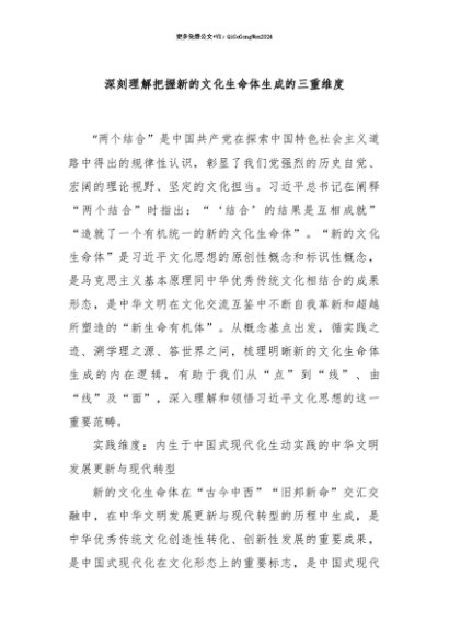 【七哥公文】2025年:【七哥公文】深刻理解把握新的文化生命体生成的三重维度+更多免费公文+VX:QiGeGongWen2024+更多免费公文+VX:QiGeGongWen2024