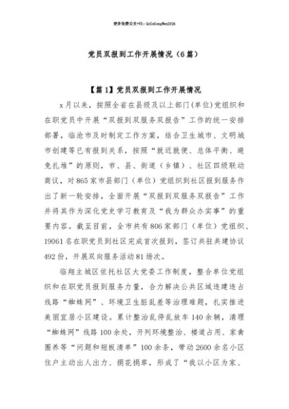 【七哥公文】2025年:【七哥公文】(6篇)党员双报到工作开展情况+更多免费公文+VX:QiGeGongWen2024+更多免费公文+VX:QiGeGongWen2024