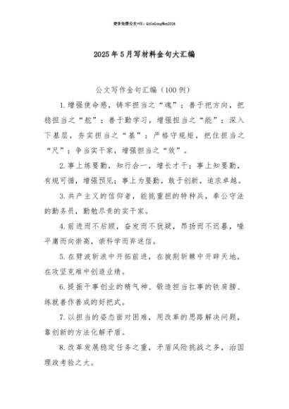 【七哥公文】2025年:【七哥公文】2025年5月写材料金句大汇编+更多免费公文+VX:QiGeGongWen2024+更多免费公文+VX:QiGeGongWen2024