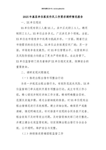 【七哥公文】2025年:【七哥公文】2025年基层单位落实作风工作要求调研情况报告+更多免费公文+VX:QiGeGongWen2024+更多免费公文+VX:QiGeGongWen2024
