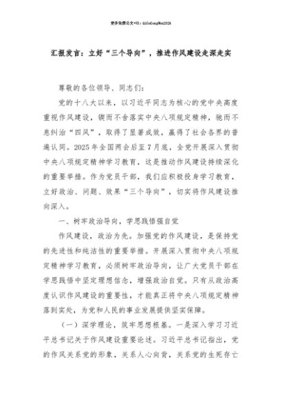 【七哥公文】2025年:【七哥公文】汇报发言:立好“三个导向”,推进作风建设走深走实+更多免费公文+VX:QiGeGongWen2024+更多免费公文+VX:QiGeGongWen2024