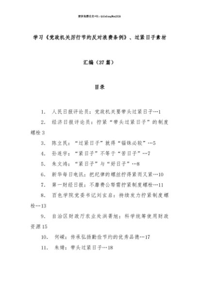 【七哥公文】2025年:【七哥公文】(37篇)学习《党政机关厉行节约反对浪费条例》、过紧日子素材汇编+更多免费公文+VX:QiGeGongWen2024+更多免费公文+VX:QiGeGongWen2024