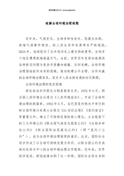 【七哥公文】2025年:【七哥公文】破解全球环境治理难题+更多免费公文+VX:QiGeGongWen2024+更多免费公文+VX:QiGeGongWen2024