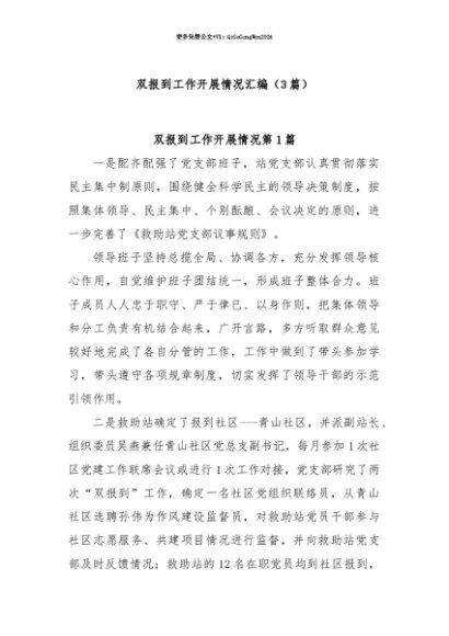 【七哥公文】2025年:【七哥公文】(3篇)双报到工作开展情况汇编+更多免费公文+VX:QiGeGongWen2024+更多免费公文+VX:QiGeGongWen2024