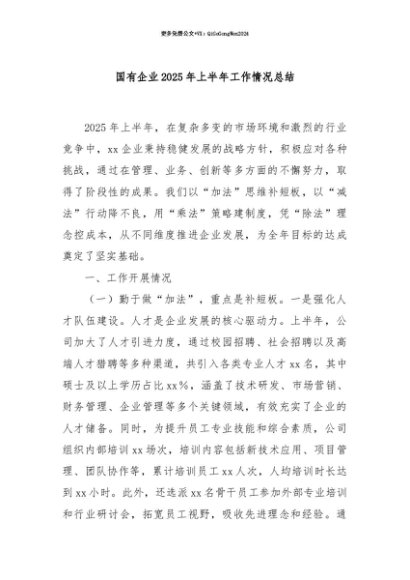 【七哥公文】2025年:【七哥公文】国有企业2025年上半年工作情况总结+更多免费公文+VX:QiGeGongWen2024+更多免费公文+VX:QiGeGongWen2024